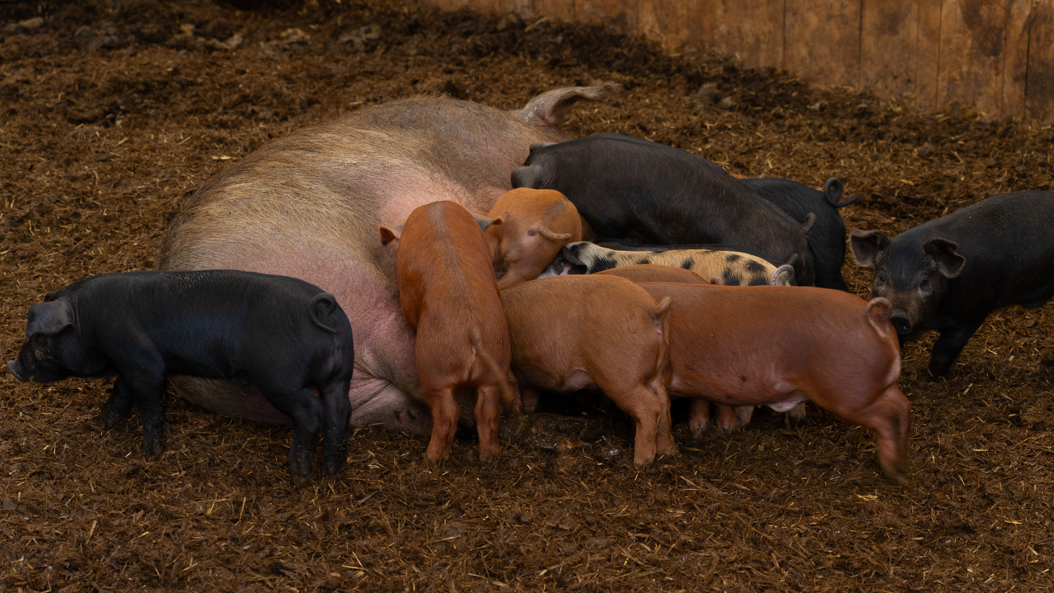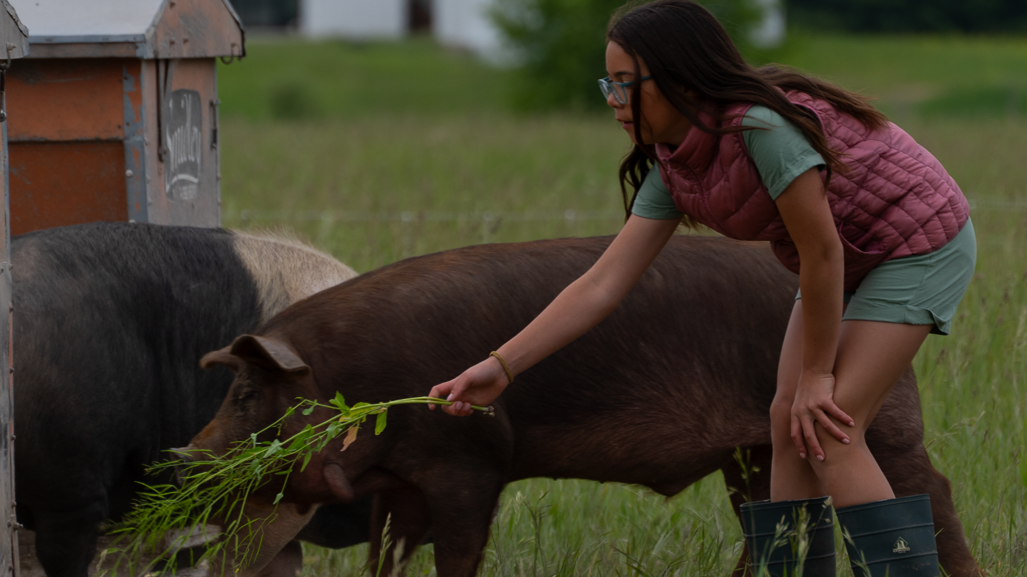 Adam Weinrich and his wife, Dandan, left their big-city Wallstreet jobs in 2019 to start a new chapter on 78 acres of farmland. Today, their pigs roam open fields, cows graze peacefully with their calves, sheep welcome farm store visitors, and chickens lay eggs in a calm, spacious environment. Every part of the farm is designed with the animals’ wellbeing and the health of the land in mind. They use rotational grazing and natural fertilizer from the animals to support soil health and regeneration.