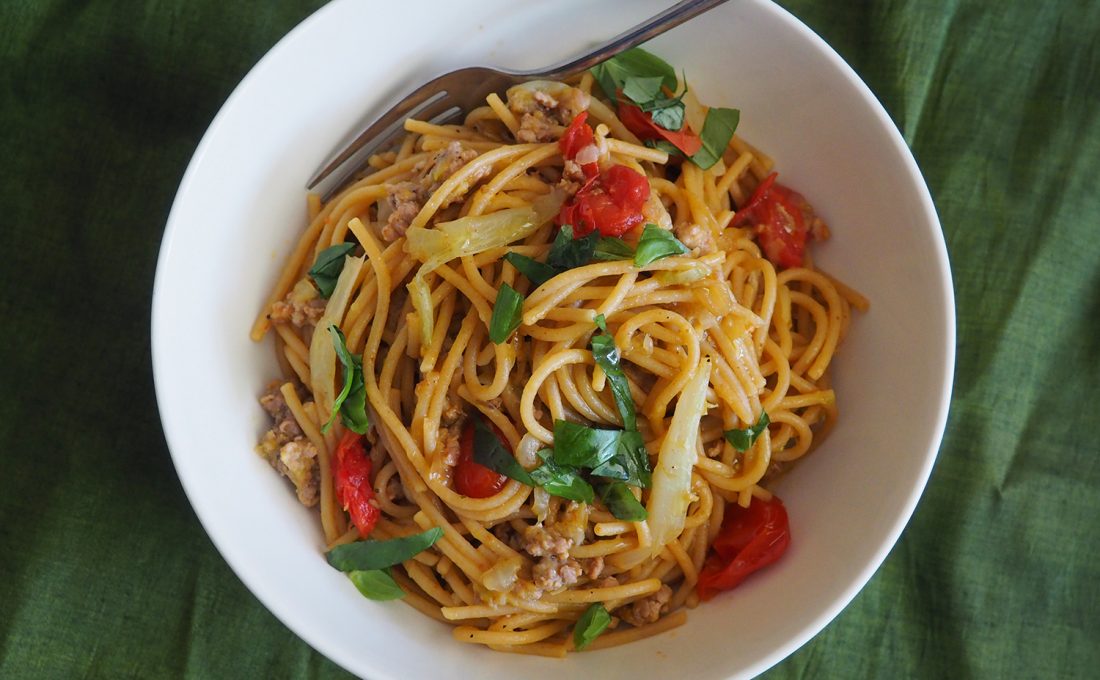 Whole Wheat Spaghetti with Sausage and Cabbage