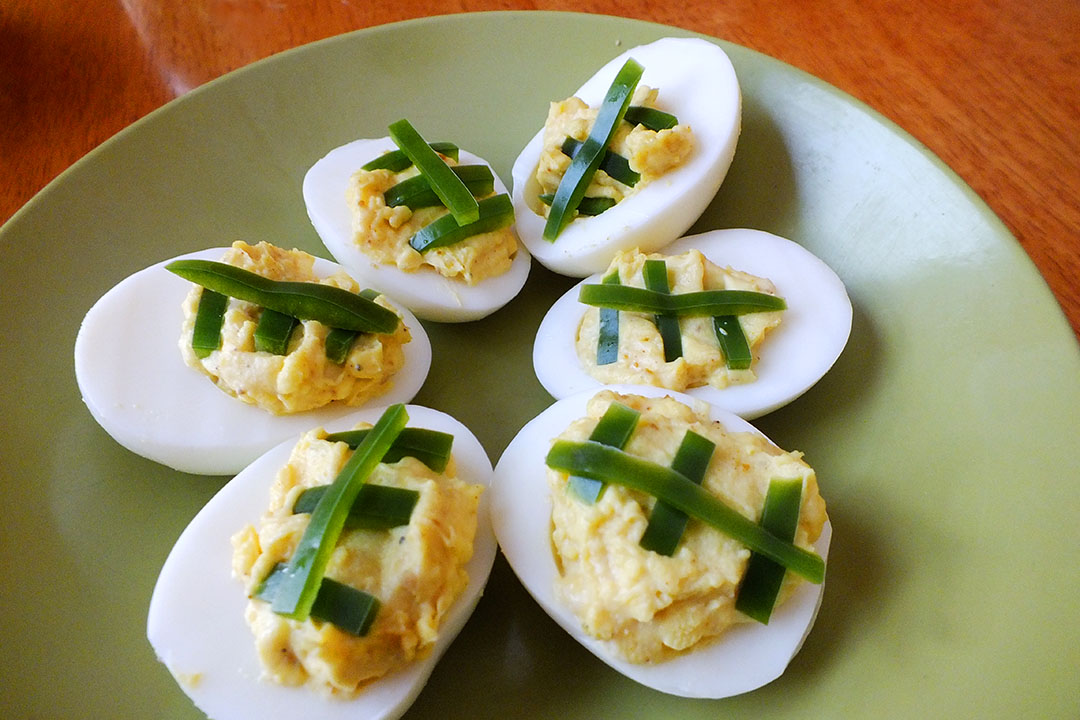 Deviled eggs are another super easy yet universally enjoyed snack. Decorate them to look like little footballs.