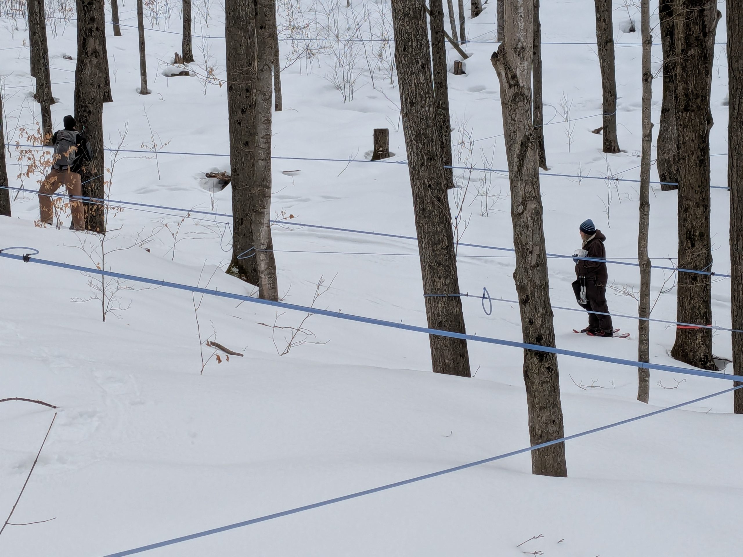 This is not easy work. The 2024/25 season brought deep snow, and the Rhynards often had to navigate the woods on snowshoes just to keep up with their lines and taps. While Green River Maple Camp avoided direct damage from the devastating ice storm that hit northern Michigan this spring, many fellow maple syrup producers in the region weren’t as lucky. Camps across southern Northern Michigan suffered severe and lasting damage to their sugarbushes, with thousands of trees and lines brought down under the weight of ice. (Read more here.)