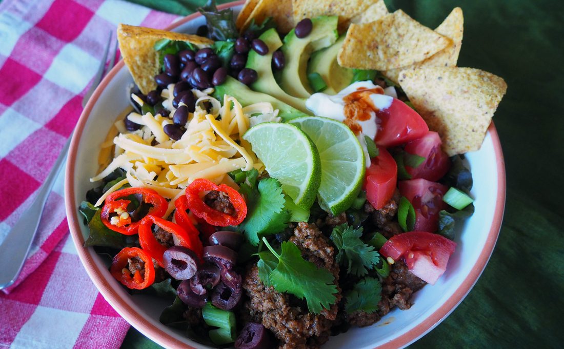 If you have taco fixings but no taco shells or tortillas, no problem! Turn the taco fillings into a satisfying salad.
