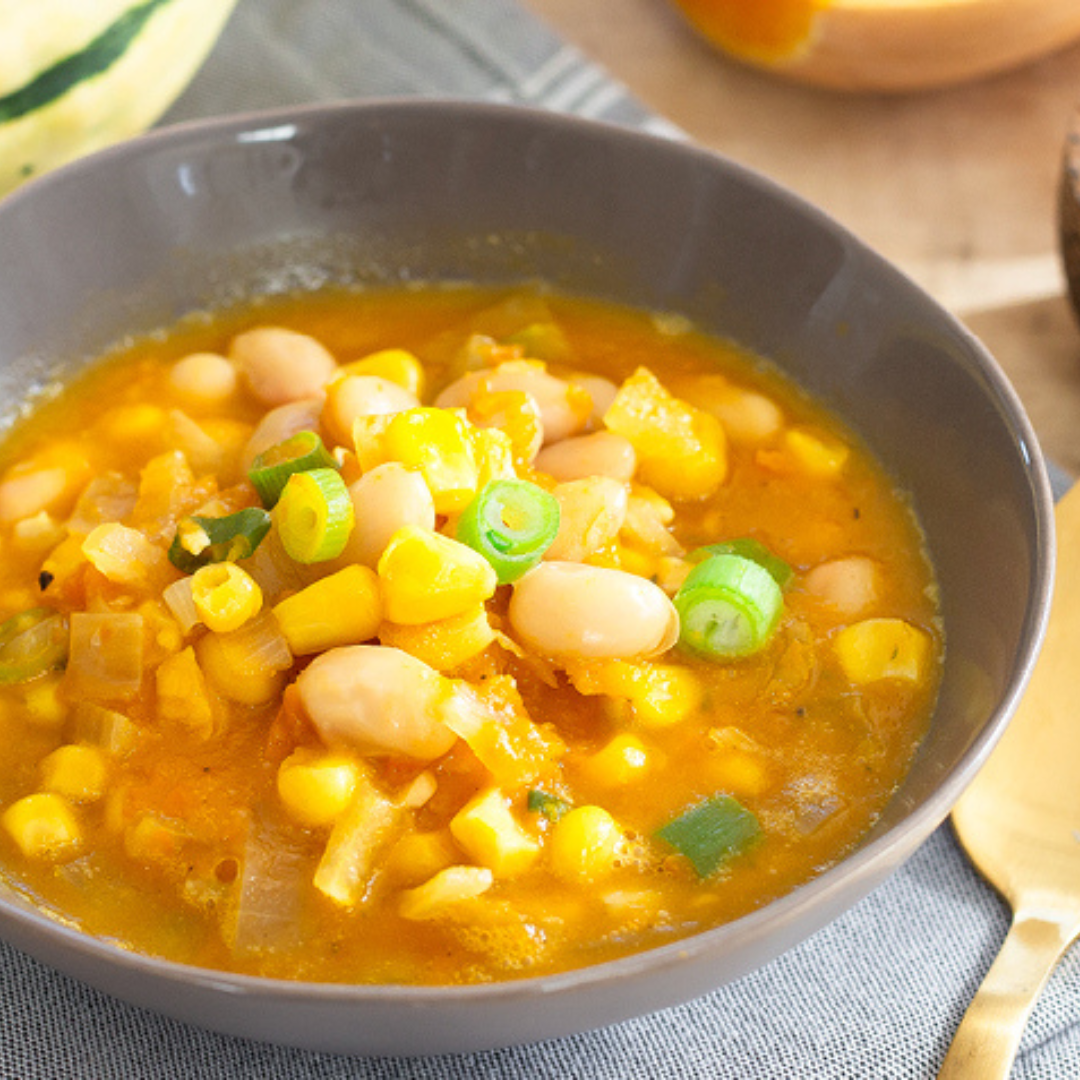 The Three Sisters—corn, squash and beans—is a Native American growing technique that capitalizes on the strengths of each individual ingredient. Cooked together they make a great soup that is popular with vegetarians and vegans.