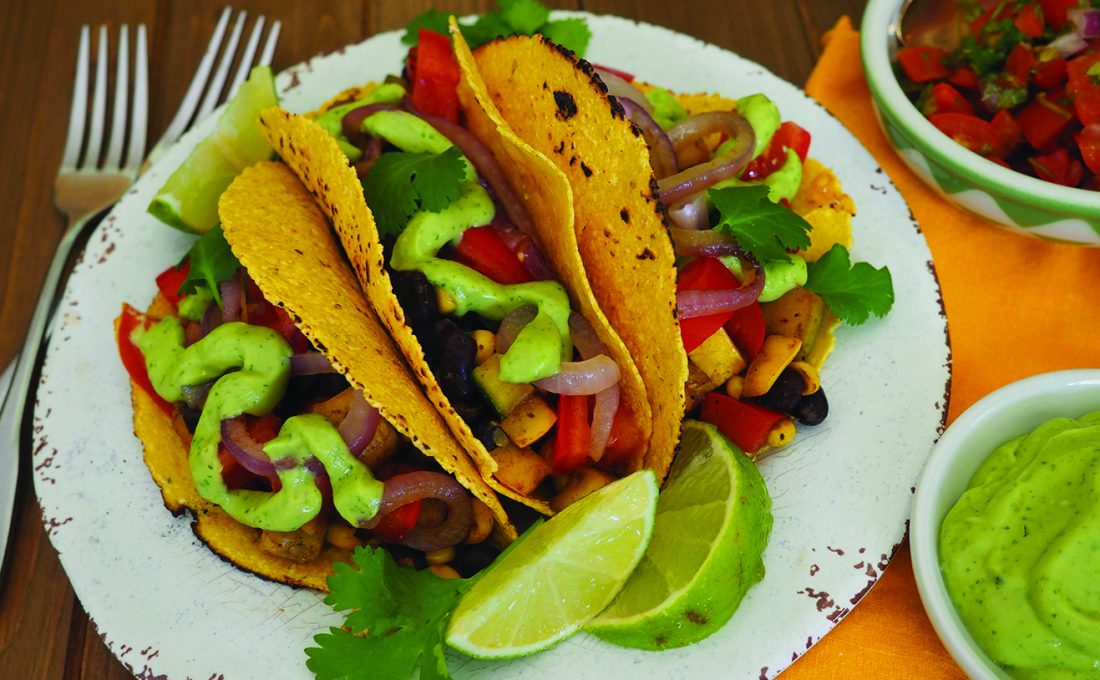 You can easily mix and match the veggies in these tacos depending on what’s in season. Just don’t skip the avocado crema!
