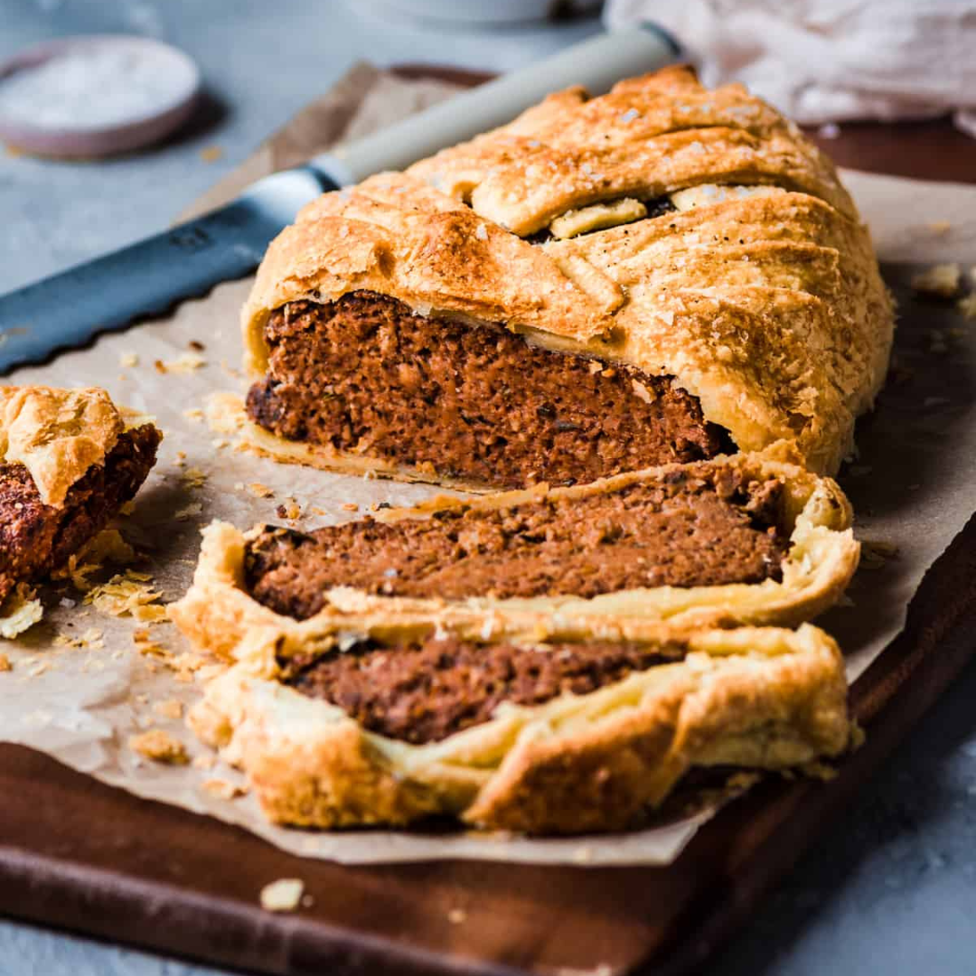 This Vegan Wellington is a true centerpiece for the holiday table. A hearty lentil and mushroom filling is wrapped in flaky, golden pastry and served with a deeply flavorful mushroom gravy. It’s a comforting, crowd-pleasing main that holds its own next to any traditional holiday spread, no meat required.